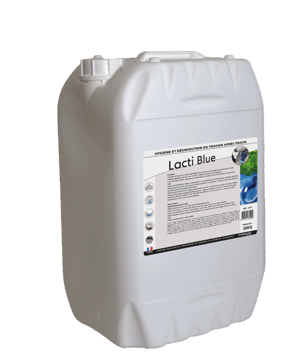 Lacti Blue est efficace dès 5 minutes, son action désinfectante est bactéricide, levuricide et virucide conformément aux normes en vigueur en hygiène du trayon après traite.