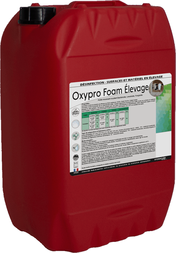 Oxypro Foam élevage est bactéricide, levuricide, fongicide et virucide.