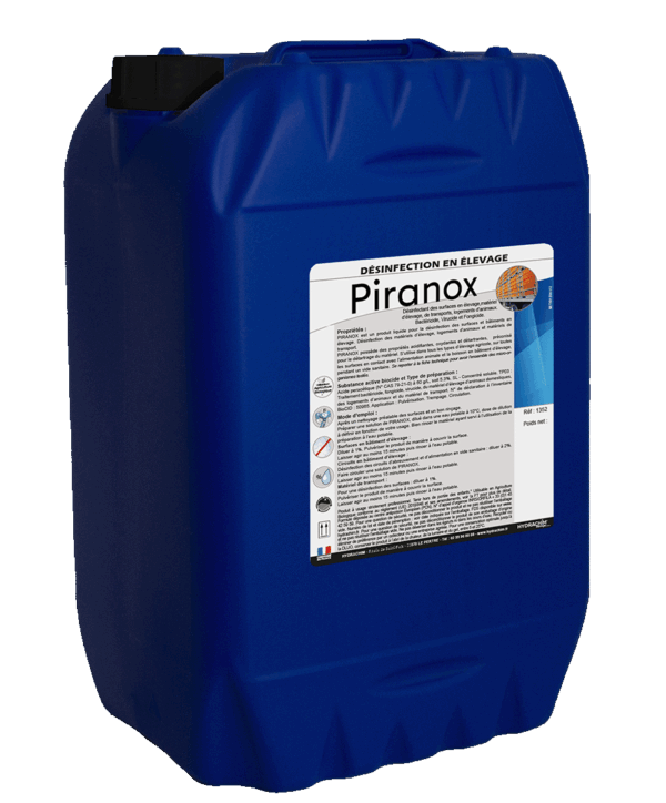 PIRANOX est un désinfectant oxydant liquide pour les bâtiments et surfaces intérieures, en élevage.