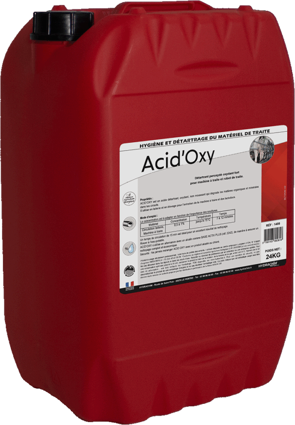 ACID’OXY est un acide détartrant, oxydant, non moussant qui dégrade les matières organiques et minérales dans les circuits.