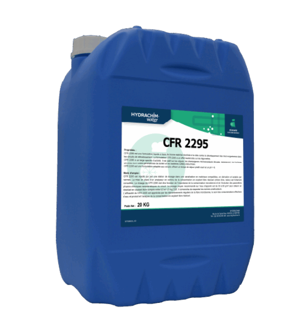 CFR 2295 est une formulation liquide à base de brome stabilisé destinée à la lutte contre le développement des micro-organismes dans les circuits de refroidissement.