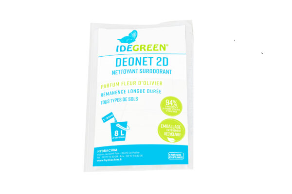 DEONET 2D parfum fleurs d’olivier est un nettoyant surodorant utilisable sur tous les types de sol. A base d’ingrédients d’origine végétale et minérale. Dosette entièrement recyclable grâce à son emballage mono-matériau.