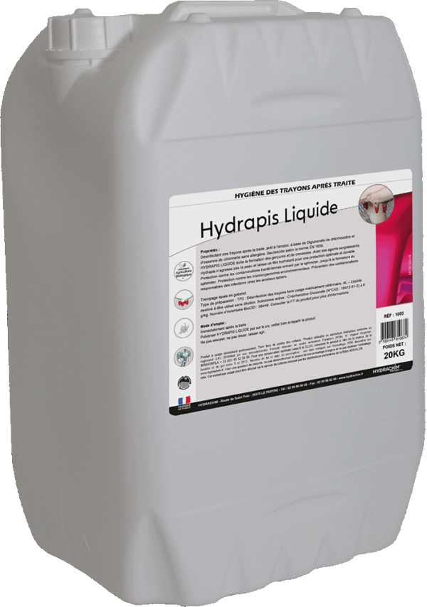 Hydrapis Liquide est un produit d’hygiène développé pour l’hygiène et la protection des trayons après la traite.