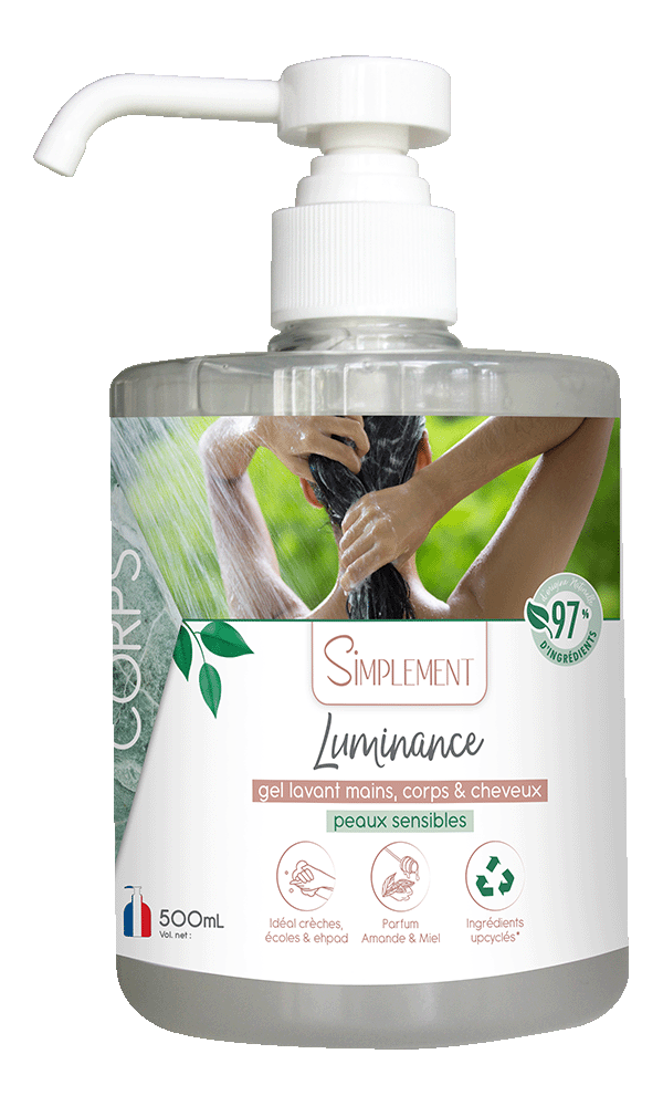 Gel douche mains, corps & cheveux au parfum Amande & Miel.