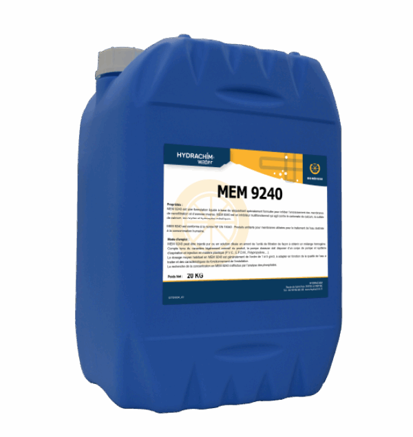 MEM 9240 est une formulation liquide à base de séquestrant spécialement formulée pour inhiber l’encrassement des membranes de nanofiltration et d’osmose inverse. MEM 9240 est un inhibiteur multifonctionnel qui agit contre le carbonate de calcium, le sulfate de calcium, les oxydes et hydroxydes métalliques.