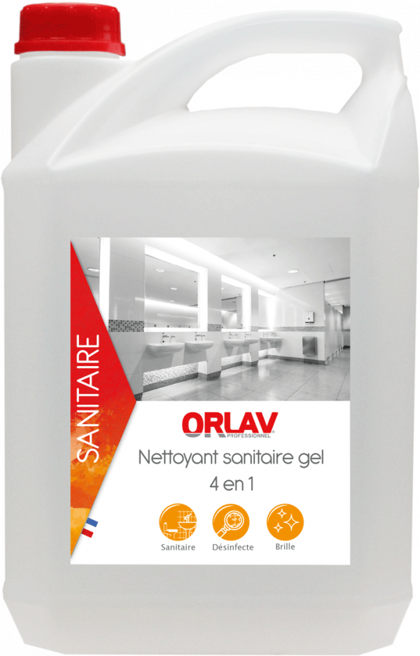Le Nettoyant sanitaire gel 4 en 1 est un produit qui dissout le calcaire et les traces laissées par l’eau et le savon. Il redonne brillance aux baignoires, lavabos, robinetteries, carrelages, etc. Le Nettoyant sanitaire gel 4 en 1 sèche sans laisser de traces et parfume agréablement. Il ne raye pas et convient à tous les types de sanitaires.