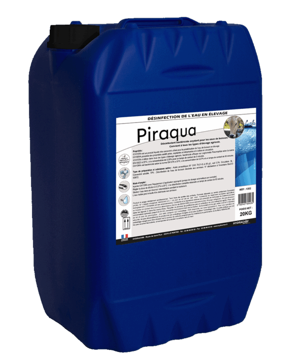 Piraqua est un détartant désinfectant liquide pour l’aquaculture et la pisciculture.